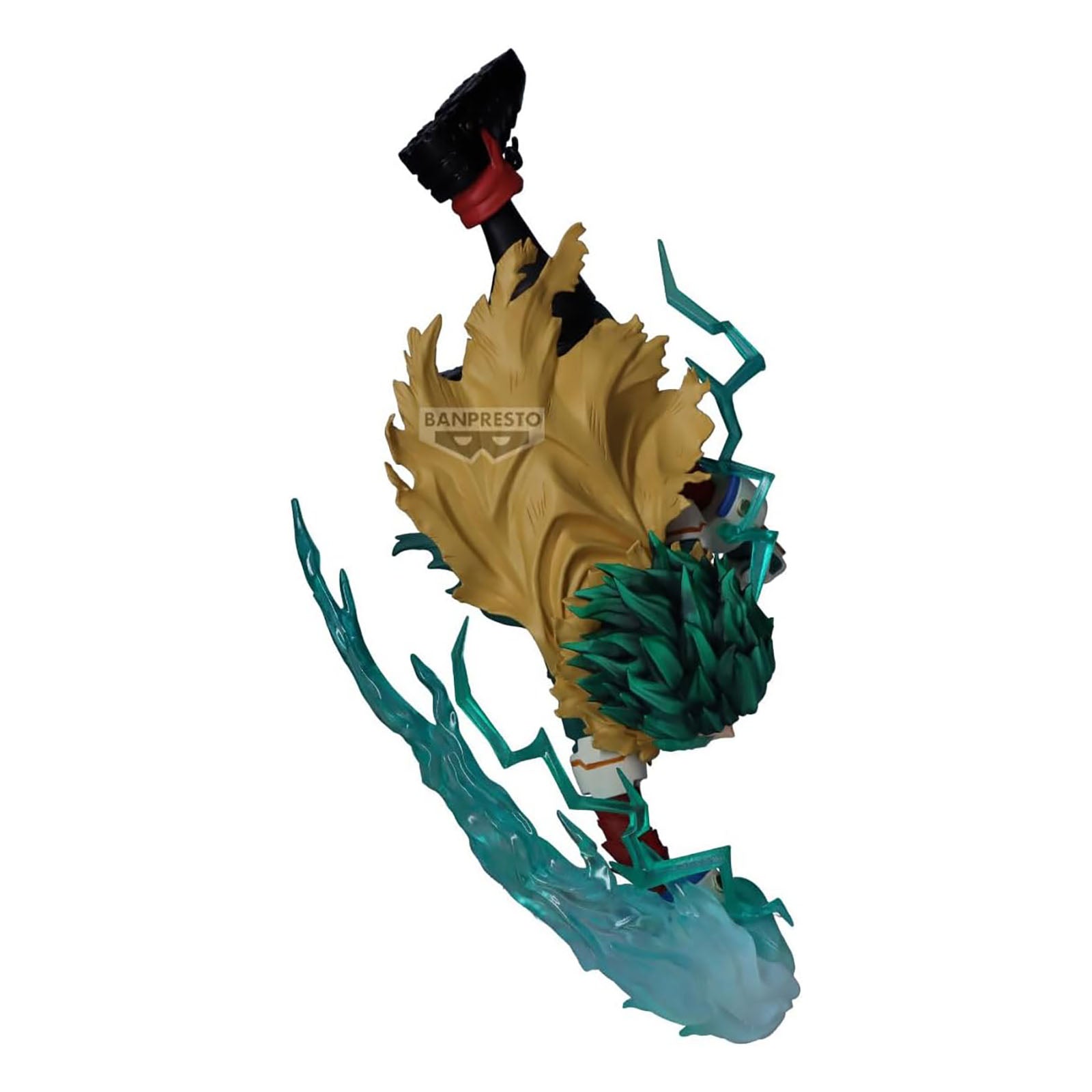 Diese offizielle My Hero Academia-Figur von Banpresto zeigt Izuku Midoriya, auch bekannt als Deku, in einer energischen Pose, wie er seinen Quirk One For All kanalisiert und zum Einsatz bringt. Die Figur ist detailreich modelliert: von seinem charakteristischen Heldenkostüm bis zu den dynamischen Energie- und Bewegungseffekten, die seinen entschlossenen Charakter zum Ausdruck bringen.