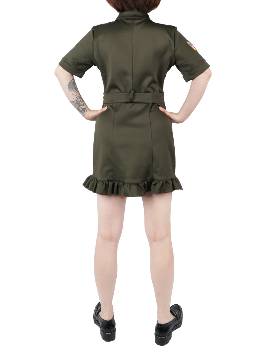 Gefertigt aus hochwertigen Materialien bietet das Kostüm nicht nur ein authentisches Erscheinungsbild, sondern auch einen hohen Tragekomfort. Die olivegrüne Farbe ist typisch für militärische Kleidung und verleiht dem Outfit einen robusten, aber zugleich eleganten Look. Das Kleid eignet sich hervorragend für Cosplay-Events, Mottopartys oder einfach als stylische Verkleidung.