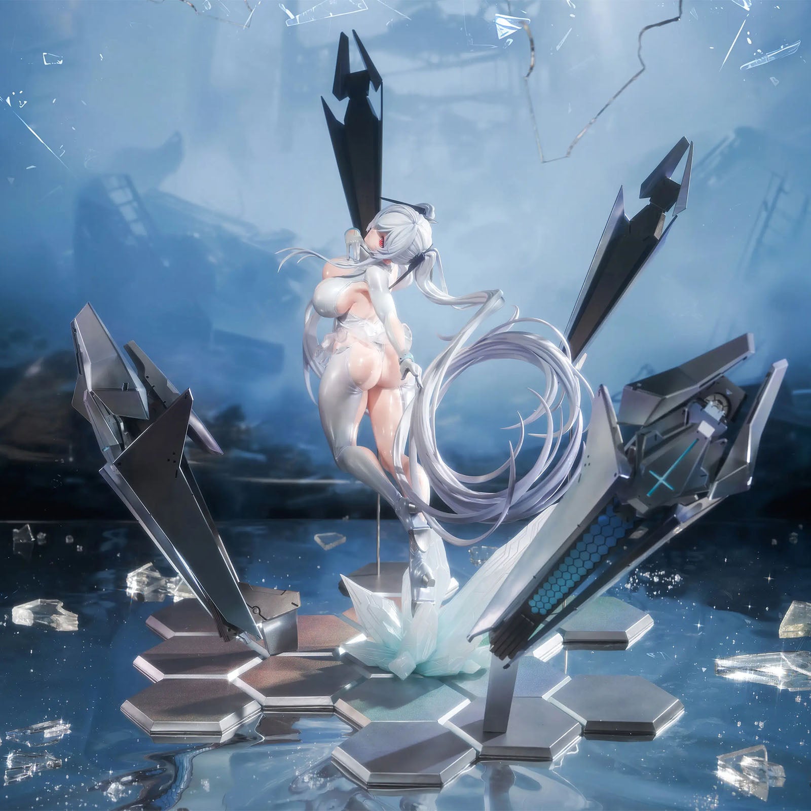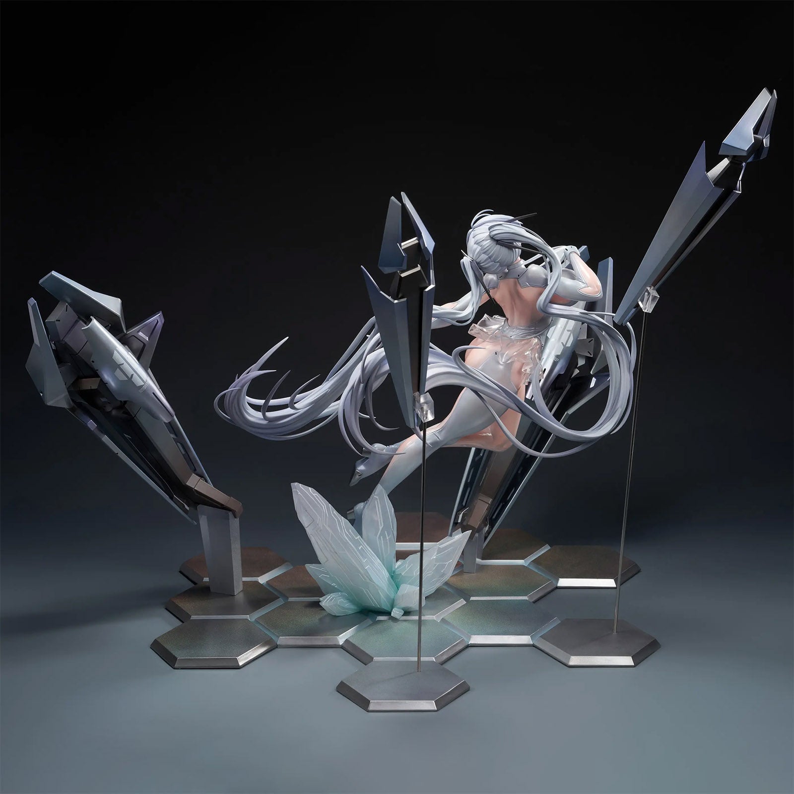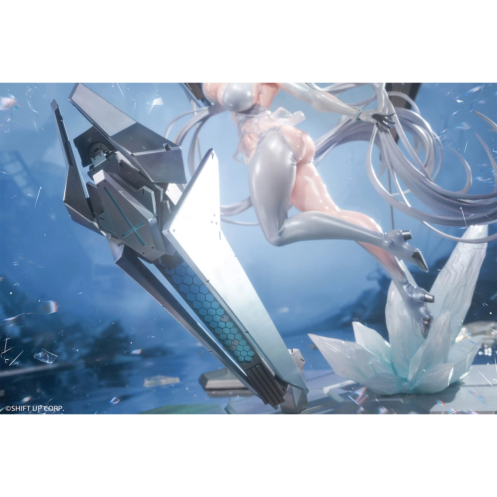 Die Nikke Aschenputtel Statue bringt Cinderella aus Goddess of Victory: Nikke als atemberaubende 1/4-Sammlerfigur direkt in Ihre Vitrine. Auf einer kristallenen Base erhebt sie sich schwebend in die Höhe, ihr langes silbernes Haar fließt in dynamischer Bewegung hinter ihr her, während sie einen sehnsuchtsvollen Blick gen Himmel richtet.