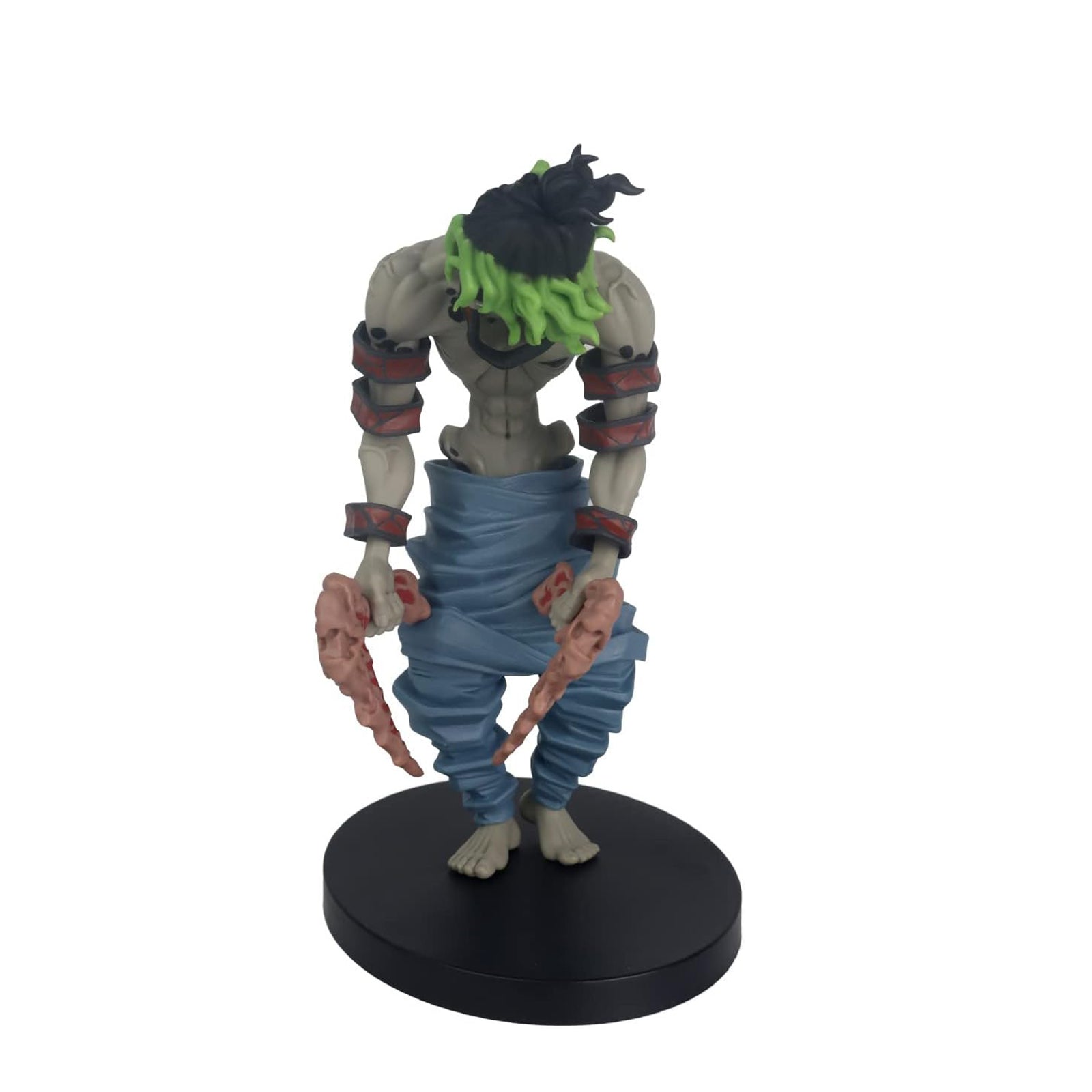 Gyutaro, der ältere Bruder von Daki, ist bekannt für seine düstere Erscheinung und tödlichen Blutkunst-Angriffe. Diese Figur fängt seinen bedrohlichen Look mit erschreckend realistischer Detailtreue ein – von den auffälligen Venen bis zu seinem dämonischen Blick und den geschwungenen Sicheln. Die Pose ist actiongeladen und verleiht der Figur eine eindrucksvolle Dynamik.