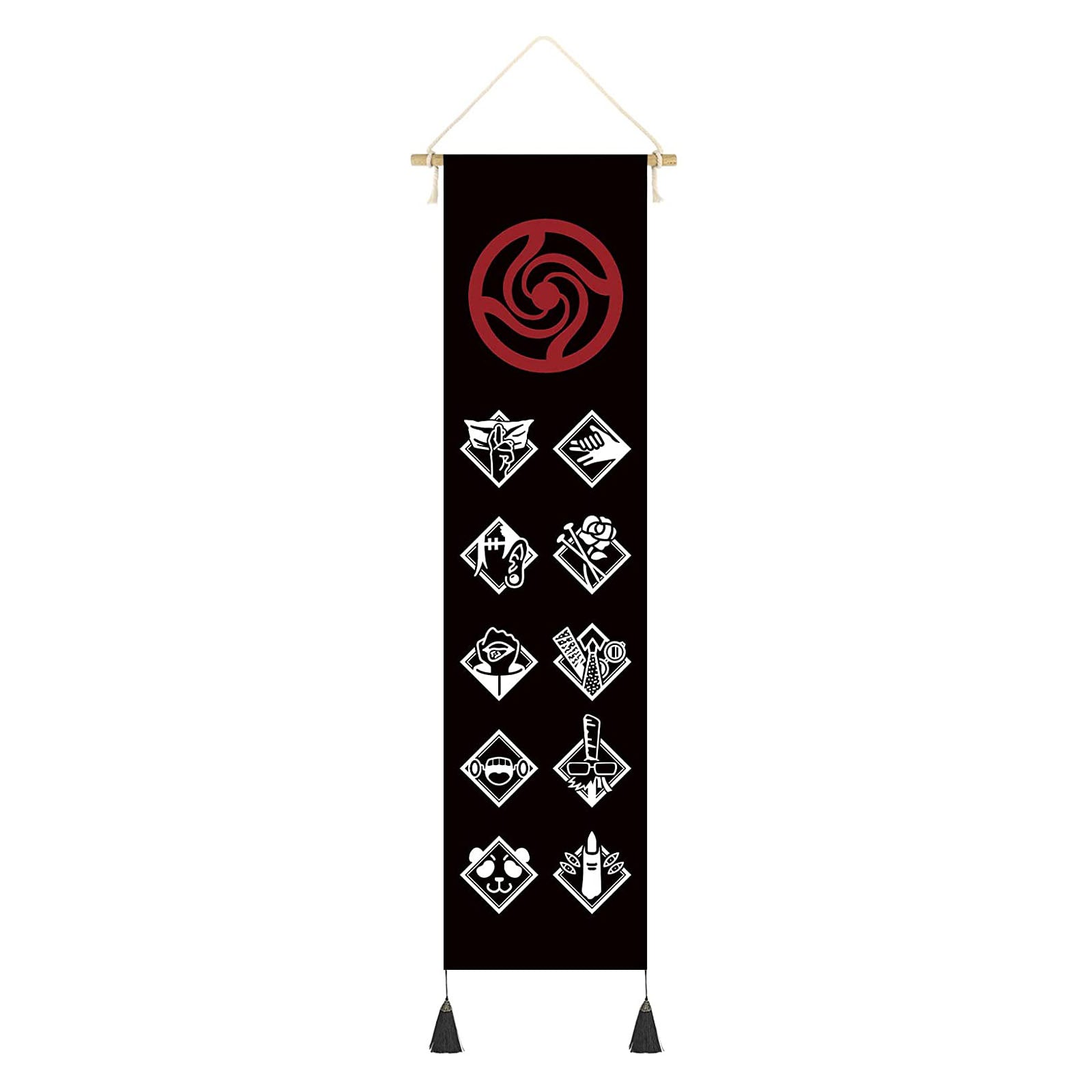 Bringe die epische Energie der Jujutsu-Akademie direkt an deine Wand! Dieses beeindruckende Rollbild (Kakemono) ist mit seinem schlanken Format von 130 x 33 cm ein außergewöhnlicher Blickfang, der perfekt an Türen oder schmale Wandabschnitte passt. Der hochwertige Farbdruck auf Textilstoff bringt die düstere und zugleich stylische Ästhetik von Jujutsu Kaisen brillant zur Geltung.