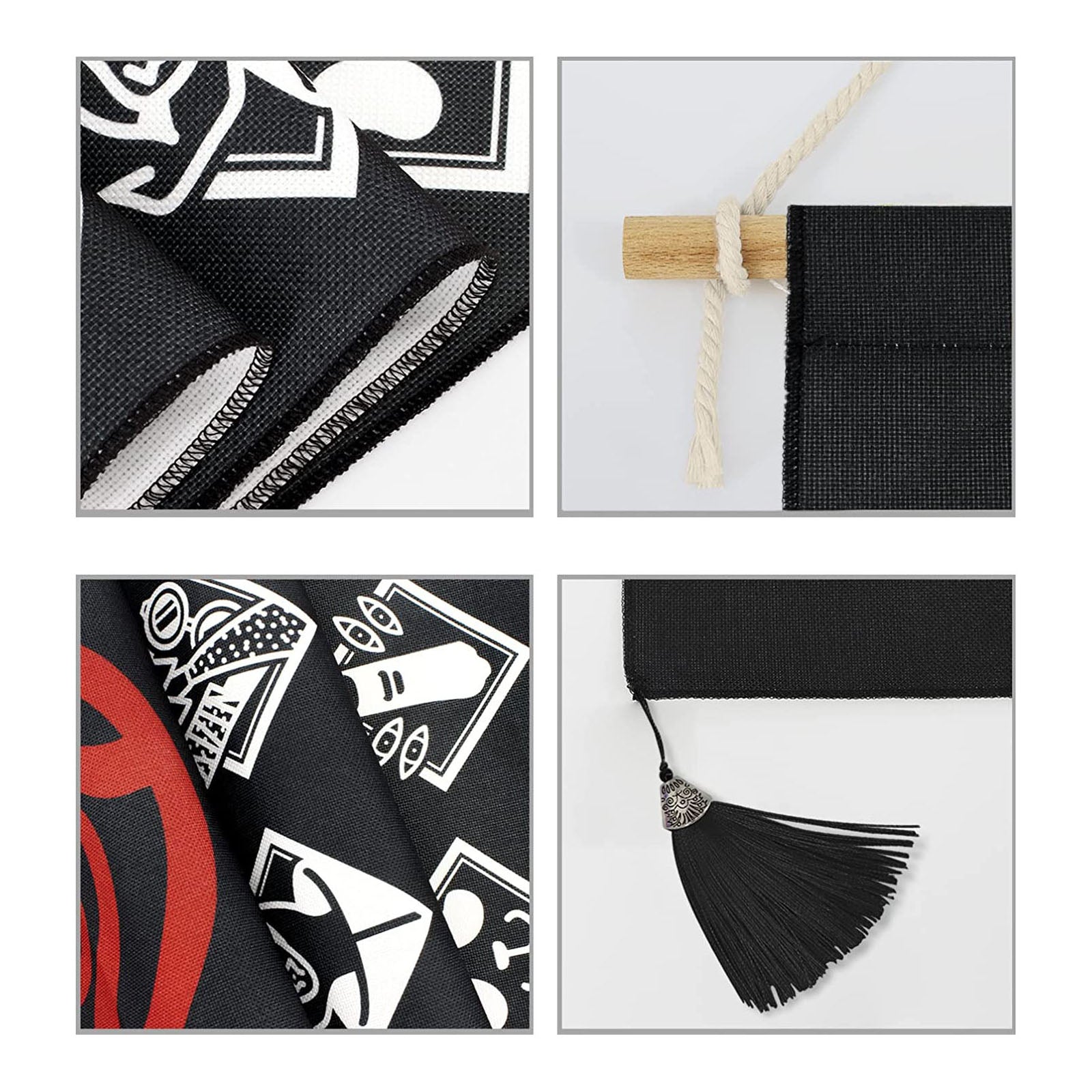 - Edle Details: Inklusive Holzstab und dekorativen Bommeln am unteren Rand.