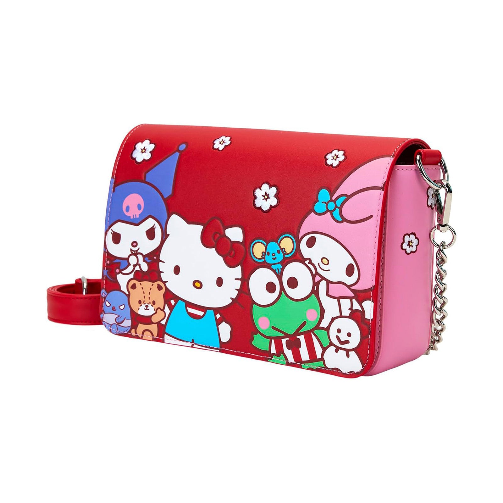 Hergestellt ist die Tasche aus hochwertigem Kunstleder (PU) mit sattem Farbdruck, der besonders langlebig und pflegeleicht ist. Das Modell ist offiziell von Sanrio lizenziert und trägt das Loungefly-Label, bekannt für außergewöhnliche Popkultur-Taschen mit Liebe zum Detail.