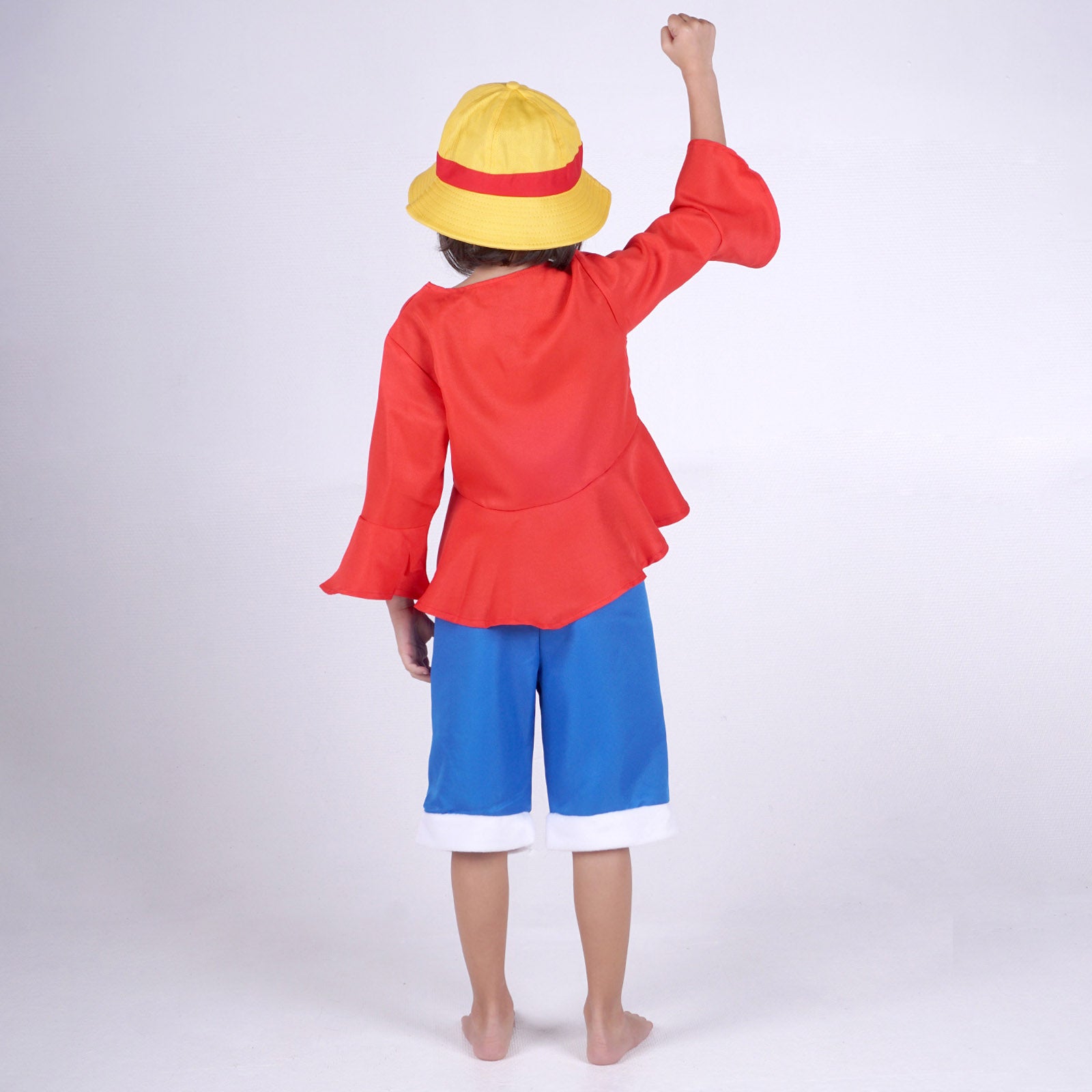 Das Outfit besteht aus einem roten, ärmellosen Oberteil mit authentischer Knopfleiste und einem goldfarbenen Saum, genau wie im Anime. Die dazugehörige blaue Shorts ist locker geschnitten, bequem zu tragen und ermöglicht volle Bewegungsfreiheit – ideal für actionreiche Cosplay-Abenteuer im Park, bei Fasching oder auf Anime-Events. Der ikonische Strohhut, das unverzichtbare Markenzeichen Ruffys, ist natürlich ebenfalls mit dabei.