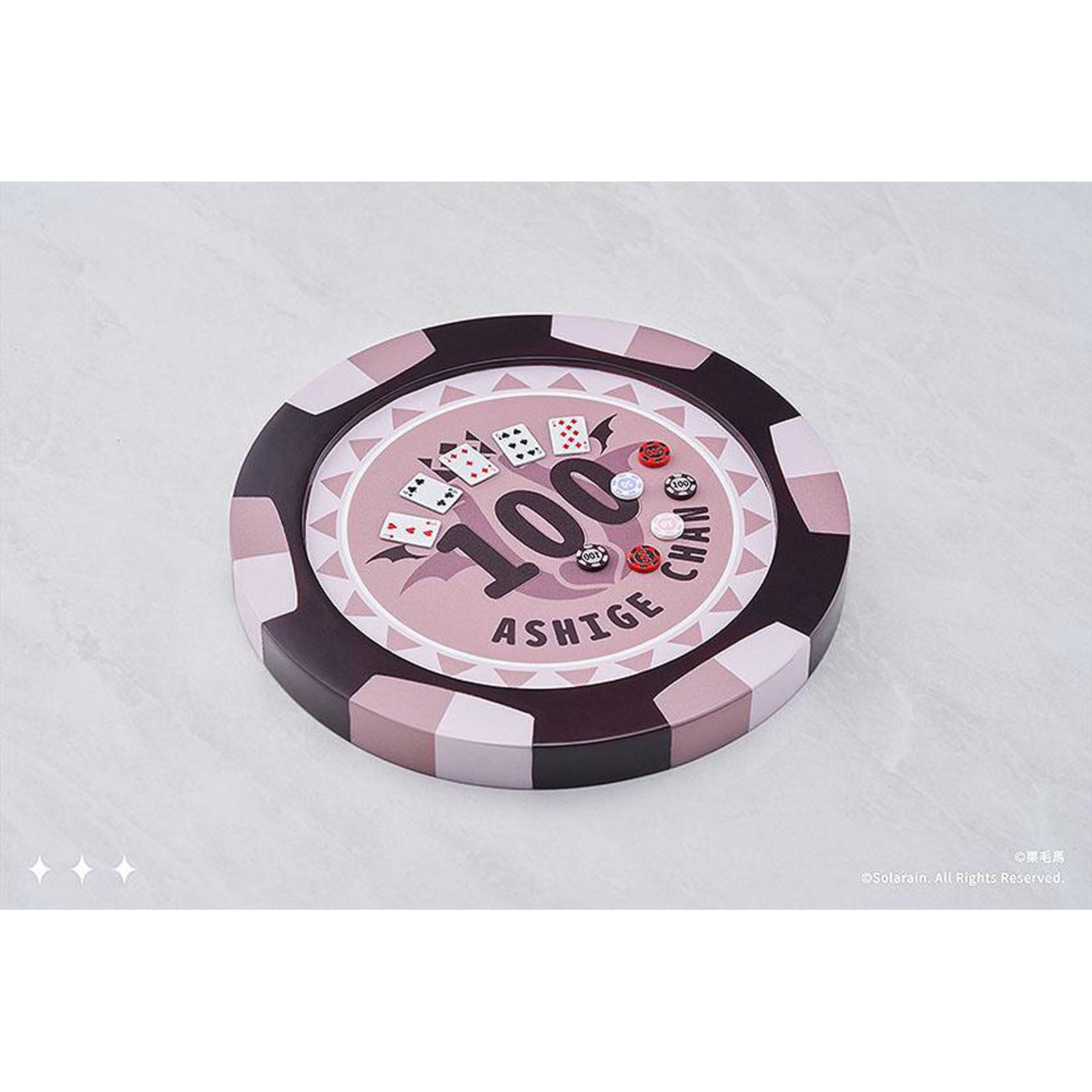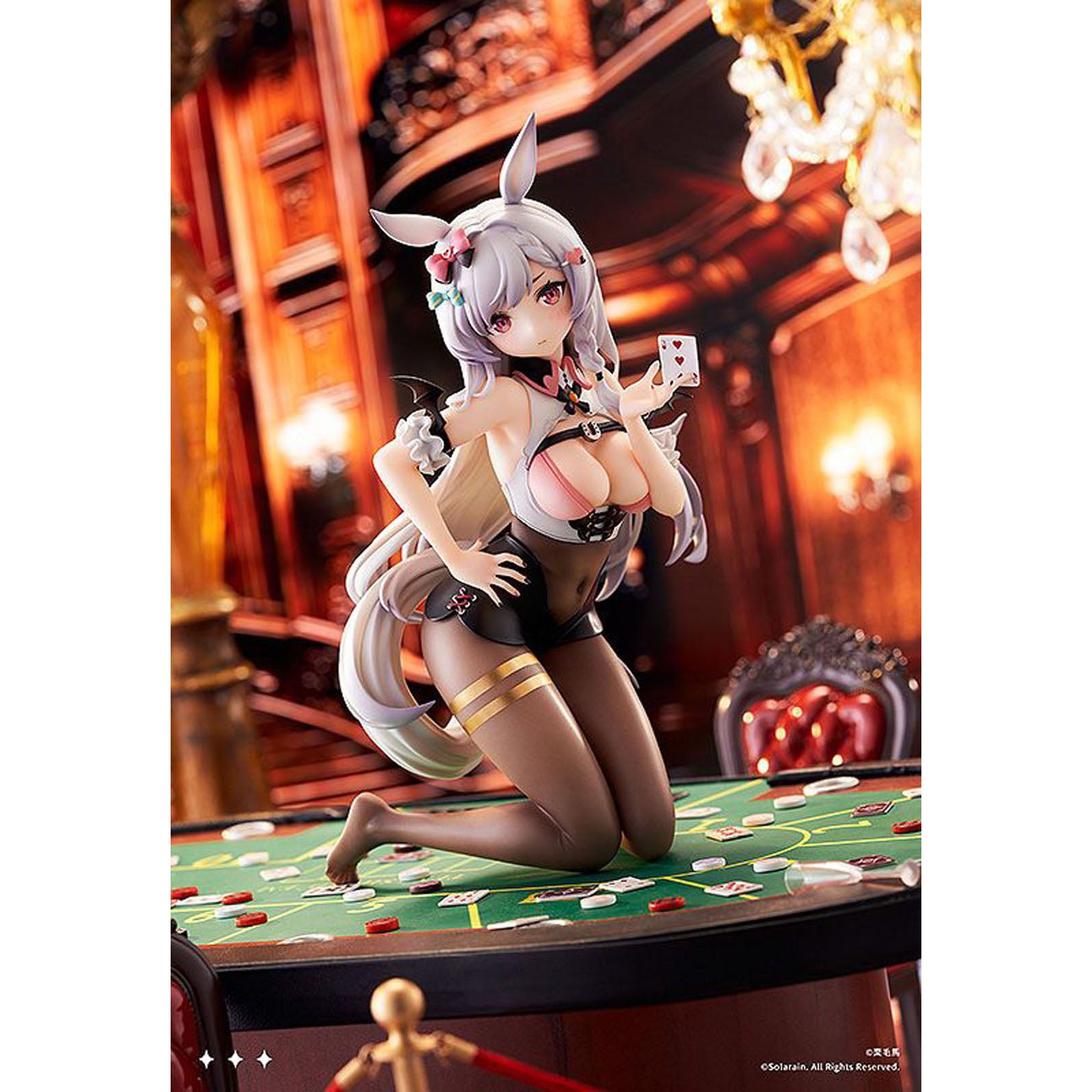 Die Figur zeigt Ashige-chan in ihrem auffälligen „Lucky Dealer“-Outfit – ein verspieltes, aber dennoch stilvolles Design, das sofort ins Auge fällt. Das Outfit kombiniert klassische Casino-Elemente mit einer frischen, modernen Ästhetik. Besonders die kleinen Details wie Spielkartenmotive, die feine Bemalung der Stofffalten und die filigranen Accessoires heben diese Statue von anderen ab.