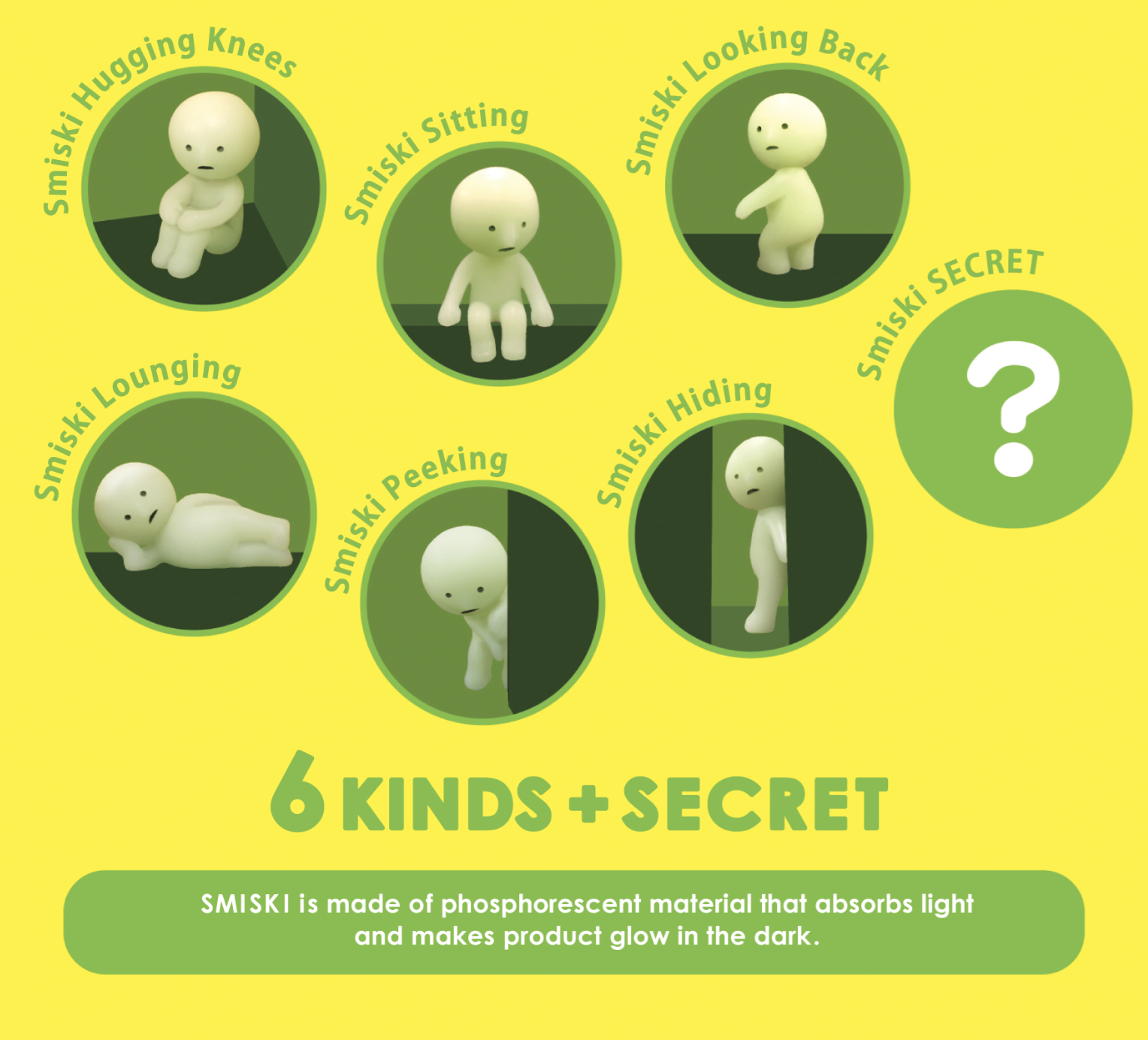 Die Figuren sind klein, handlich und aus hochwertigem ATBC-PVC gefertigt. Mit Größen von ca. 46–54 mm Breite und 48–76 mm Höhe passen sie in Regale, Vitrinen oder auf Schreibtische. Das Glow-in-the-Dark-Material lädt Kinder und Erwachsene gleichermaßen ein, die Figuren bei schwachem Licht zu genießen, wodurch sie eine magische Atmosphäre schaffen. (smiski.co