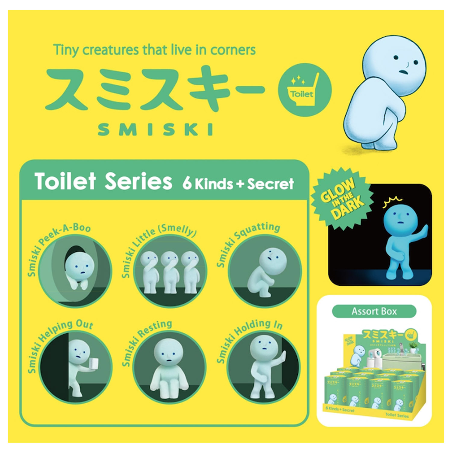 Die Smiski Toilet Series zeigt die kleinen, neugierigen Kreaturen in lustigen und alltäglichen Badezimmer-Situationen. Einige Smiski helfen dir, indem sie Toilettenpapier bereithalten, andere warten geduldig darauf, dass sie an der Reihe sind, und manche reagieren empfindlich auf unangenehme Gerüche und halten sich die Nase zu.